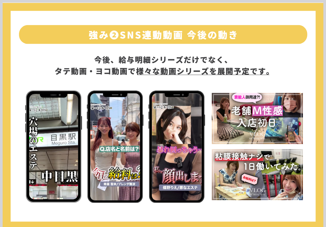 人気の「給与明細シリーズ」に加え、VLOG形式の体験入店動画など、親しみやすい企画を続々と展開予定です。